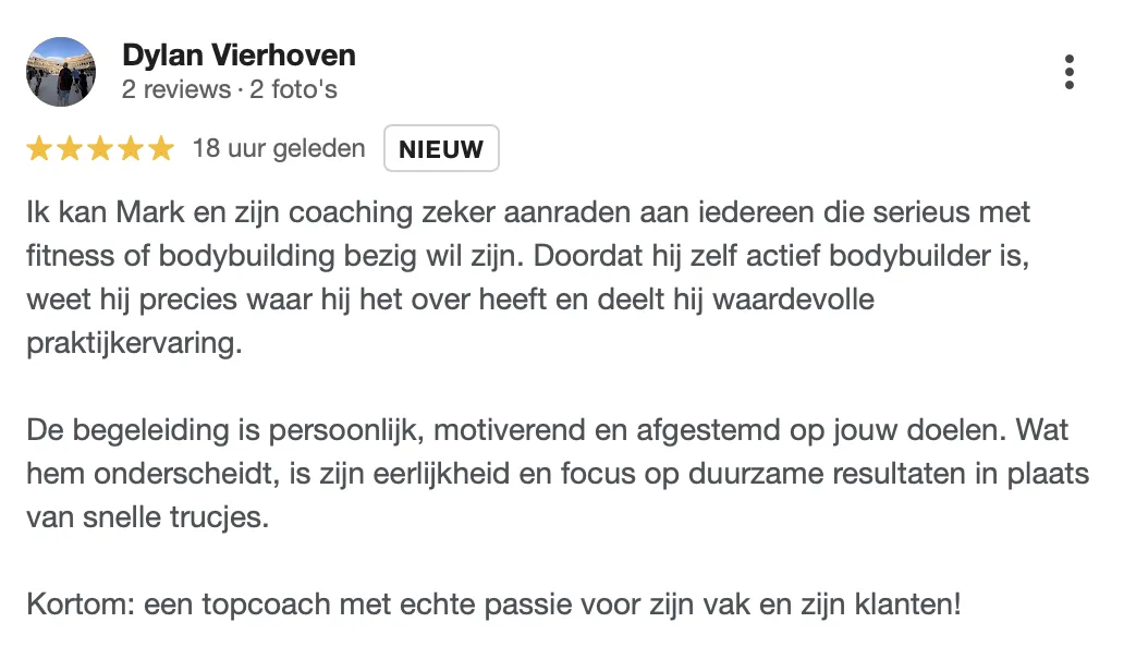 Je krijgt een doordacht trainingsschema met focus op spieropbouw en online coaching van bodybuilder en online coach Mark Bouwman
